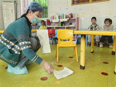 校园食品安全是学校安全工作的重中之重。为更好地保障孩子们的身体健康和生命安全,有效提高学校食品安全突发事件的紧急处置能力,最大限度地减少食品安全事故带来的危害。9月25日,汉阴县城关镇中心幼儿园开展食品安全演练活动。此次演练以大班幼儿疑似食物中毒为背景。演练前,幼儿园制定了详细的演练方案,以确保活动有序进行。后勤主任方芳老师先对老师们进行了食品安全演练部署,让大家了解食品安全知识,建立、树牢良好的食品安全意识。