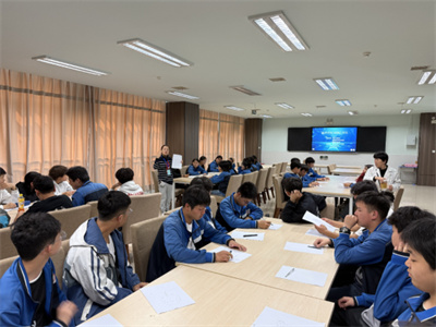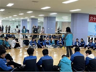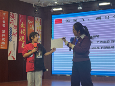 金叨老师在多功能教室为九年级一班带来“吐槽大会”教育戏剧。学子们卸下心理包袱,以幽默与坦诚为“武器”,在互动中高效释放了升学压力。