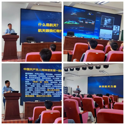 于老师从“什么是航天?航天和我们有什么关系?”切入,向同学们介绍了世界航天发展历程,重点向同学们介绍中国航天发展历史,回顾为中国航天发展做出重要贡献的科学家,生动地阐释了中国航天精神。同时,为大家展示了中国航天发展中的陕西力量,介绍了我们陕西航天人为中国航天发展做出的贡献。最后,激励同学们学习航天精神,努力学习,立志为中国航天做贡献。