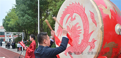 老师们手持蘸着朱砂的毛笔,为学子们点上"智慧之眼",并寄语:"点破朦胧,笔画朱红,愿你们眼明心亮,好读书,读好书。"紧接着,储校长亲自击响"启智鼓",三声浑厚鼓响后,学生代表轮流击鼓,激荡着对未来的无限憧憬。