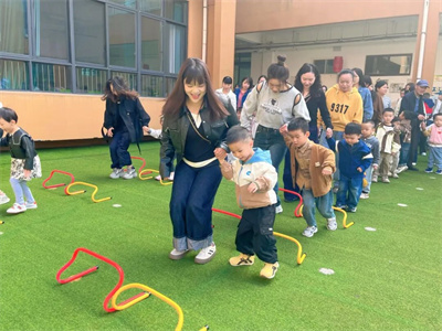 来到幼儿园的操场上,保教副主任袁茜对本园特色体能课程进行了详细的介绍。在了解特色体能课程后,家长与幼儿共同参与到亲子游戏活动环节,在欢乐互动中,感受游戏带来的乐趣,共同见证孩子在寓教于乐中成长的点点滴滴,体验了幼儿园“玩中学、学中乐”的教育理念。