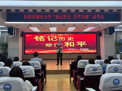 为喜迎国庆与中秋双节,弘扬爱国主义精神,传承优秀传统文化,丰富教职工精神文化生活,9月26日上午,汉滨区城东小学在五楼报告厅举行了“铭记历史,吾辈自强”教师读书分享会。本次活动旨在通过红色阅读分享,引导教师重温奋斗历程,凝聚育人初心。