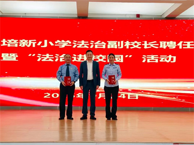 活动伊始,校长陈大安为新任法治副校长颁发了聘书。随后,程白露结合小学生年龄特点,以“校园欺凌:一场没有胜利者的‘游戏’”为主题,通过剖析真实案例,从“法律是什么?什么是校园欺凌?分清校园欺凌中的角色及危害面对校园欺凌怎么办?”4个方面为全体师生带来了一场精彩且深刻的法治教育讲座。活动最后,副校长李新峰作总结讲话,希望全体学生能够知法、懂法、守法,做文明有礼的培新学子。活动结束,来宾参观了学校红领巾法学院并介绍了各部室的功能。