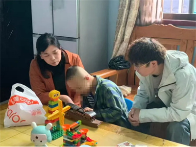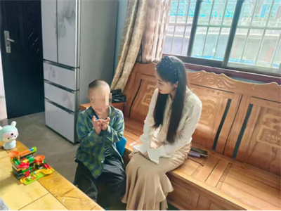 9月26日清晨,赵雪娟、雷鹏辉、李佳荣三位老师走进树树的家,迎接他们的是一张灿烂的笑脸和一个热烈的拥抱。音乐课上,树树虽无法清晰唱出《郊游》的旋律,却专注地模仿着老师的口型,眼神里闪烁着对节奏的渴望;认知环节,风力发电机玩具激起他浓厚兴趣,老师们顺势引导,在游戏中激发探索的火花;最后的射水枪游戏,笑声四溢,动作协调在欢乐中悄然提升。这不仅是一次送教,更是一场心灵的共舞——在爱的陪伴下,每个孩子都能以自己的节拍,走向属于自己的光芒。