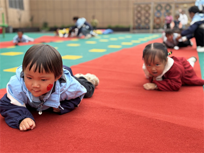 经过半个月系统训练,孩子们化身 “小小解放军”,在操场上复刻长征路上的勇气与坚持,用热血与活力为祖国母亲送上特别的节日祝福。小班幼儿在模拟草地封锁线的场景中匍匐前进,中班幼儿则在复刻长征险关的火线战壕间穿梭,大班幼儿的翻山越岭展翅横空更具挑战,桌子打造悬空栈道考验着专注力,