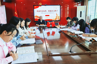 活动伊始,学校党支部书记结合汉阴县丰富的红色文化资源,系统讲述了中国共产党在土地革命战争、抗日战争、解放战争和抗美援朝战争时期的伟大奋斗历程,强调红色文化是中华民族的精神脊梁,应让红色基因深深融入学生的血脉。他还以单元课文为例,具体阐释如何提炼革命文化元素,借助本地红色资源,通过实地探访革命旧址、“致革命先烈一封信”、“汉阴红色故事我来讲”等实践性活动,让红色文化真正走出课本、走进学生心灵,体现在日常言行之中。