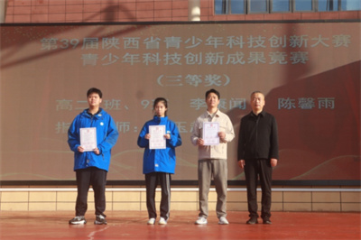 我校四组同学的创新成果,在第39届陕西省青少年科技创新大赛中取得了优异的成绩。