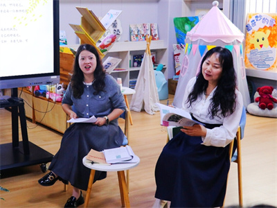 活动伊始,伴随着轻柔的音乐,副园长许玲以游戏的形式,组织大家开展导读、领读书中精彩语段,让大家在共读中再次回顾书中内容。