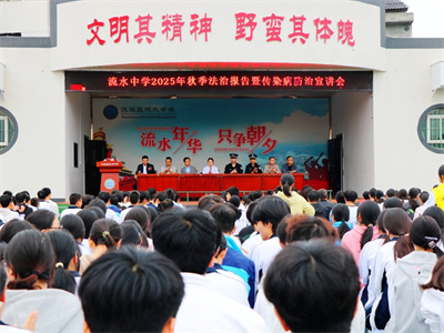 筑牢安全防线,护航青春成长。为增强全体师生的法治观念与健康防护意识,构建平安、和谐的校园环境,10月11日上午,汉滨区流水中学举行了2025年秋季校园法治教育暨传染病防治知识宣讲活动。