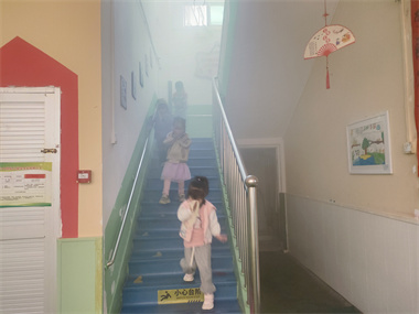 演练前,各班级教师通过动画短片、实物演示等幼儿易懂的方式,向幼儿讲解了火灾的危害、火场逃生要点及灭火器使用原理,让“小伙快跑、浓烟关门”等安全知识深入人心。上午10时,随着刺耳的消防警报声突然响起,演练正式开始。各班教师迅速组织幼儿用湿毛巾捂住口鼻,弯腰低头,沿着预设疏散路线快速、有序地向操场安全区域撤离。整个疏散过程仅用3分20秒,全体师幼均安全到达指定地点,无拥挤、摔倒现象。