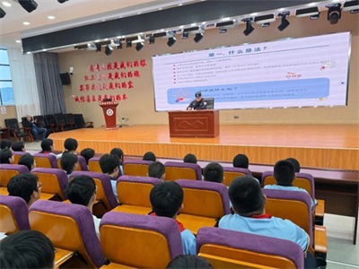 汪涛警长围绕学习生活中的场景,从学生应知应会的法律小知识入手,结合学生的年龄特征、心理特点和认知能力,围绕“什么是法”“未成年人的权利与义务”“未成年人与法”“未成年人在面对犯罪或者危险的时候如何处理”4个方面向大家进行了详细全面的讲解,并通过真实案例解析,向大家分析了常见的故意伤害、抢劫、电信网络诈骗等违法犯罪行为的表现形式、危害后果以及应对方法,引导同学们思考如何有效预防和正确应对,为全体同学带来了一场受益匪浅的法律文化之旅。