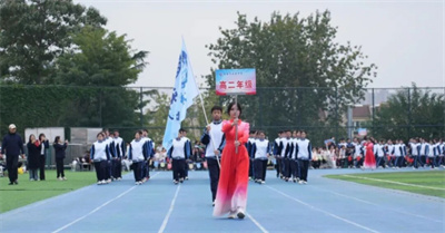 秋风为歌,赛场为卷。气势如虹的高二年级运动员代表方阵,展示了他们将以拼搏为笔,描绘青春的轨迹,点燃梦想的火焰。